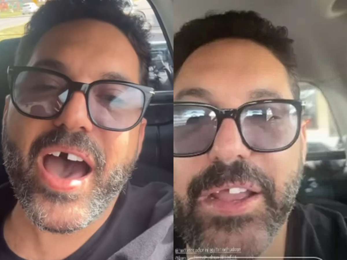 Em um vídeo publicado em seu Instagram, o cantor apareceu rindo ao mostrar o desastre. "Oi, gente. Aconteceu uma coisa muito triste comigo. Vou ter que revelar. Fui morder um pedaço de frango e aconteceu isso. Que gracinha", debochou.