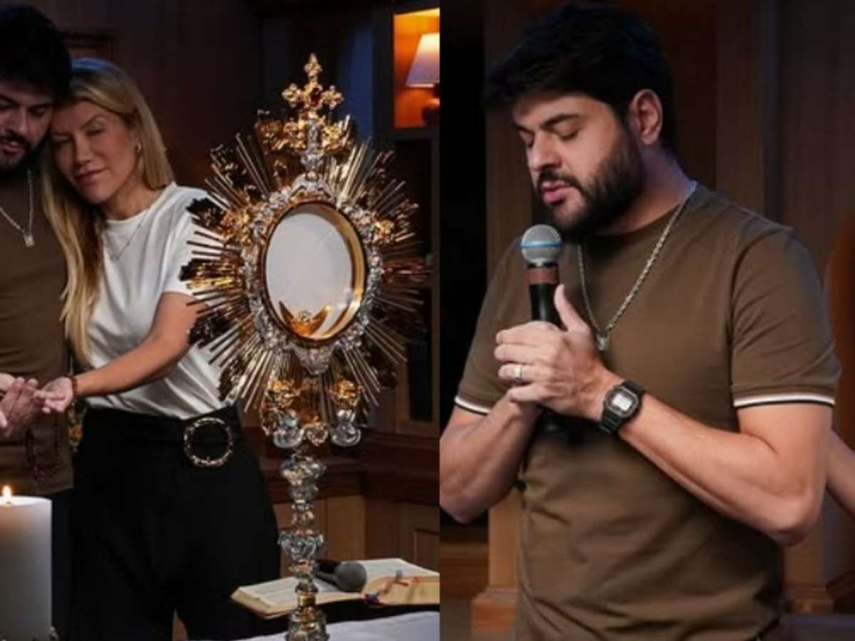 O cantor sertanejo Cristiano e sua esposa Paula relataram a trajetória de saúde do filho caçula Miguel durante participação no Santo Rosário conduzido por Frei Gilson. O depoimento aconteceu na madrugada desta quarta-feira (27/8), em transmissão ao vivo para os espectadores. As informações são do portal Metrópoles.