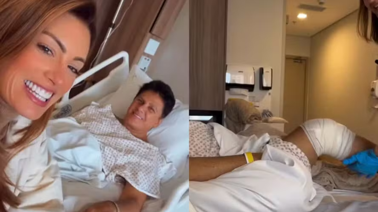 No vídeo publicado, Elaine Mickely surgiu ao lado do marido, mostrando o bom humor de Cesar após a cirurgia. "Vocês querem saber se meu marido voltou bem da cirurgia? Ele está mais falante do que nunca... Ele conseguiu dormir duas horinhas seguidas", brincou. A atriz também contou que a fisioterapia começou ainda no hospital: "Primeira dobra do joelho e primeira caminhada. Ele está se recuperando bem".