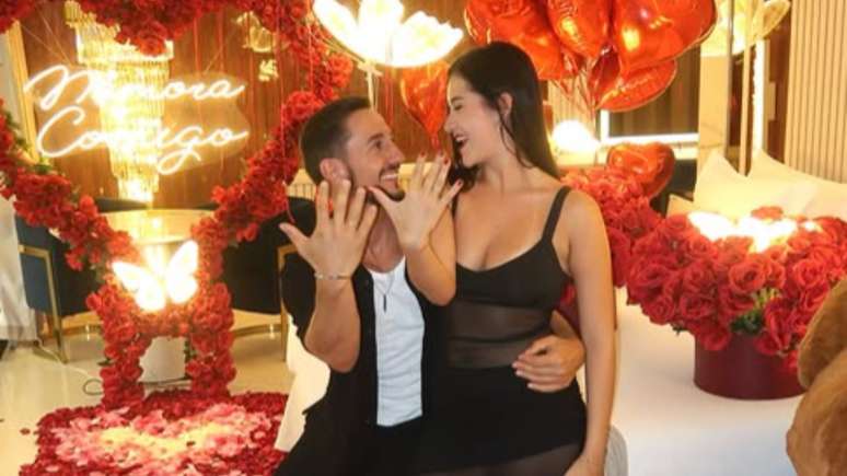Em seguida, o novo casal aparece com roupas combinando e exibindo as alianças de compromisso. "Eu disse sim…", escreveu Duda na legenda da publicação feita em colaboração com Luiz Otávio.