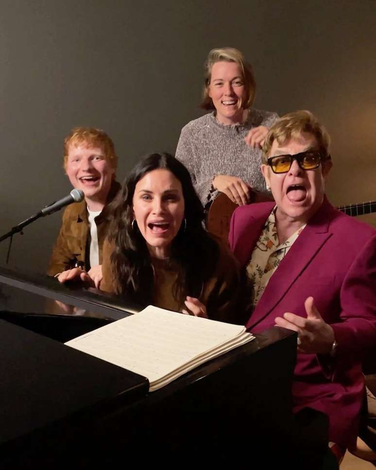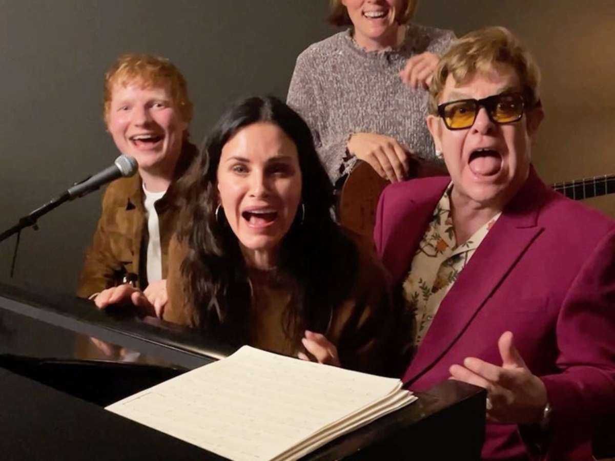 A reunião de "Friends" continua com episódios inéditos no Instagram de Ed Sheeran e Courteney Cox. Depois de recriarem a dança conhecida como "a rotina" a dupla agora se juntou com outros friends, a cantora Brandi Carlile e Sir Elton John em torno de um piano, para uma performance acústica de "Tony Danza", a versão criada pela personagem Phoebe para o sucesso "Tiny Dancer", de Elton John.