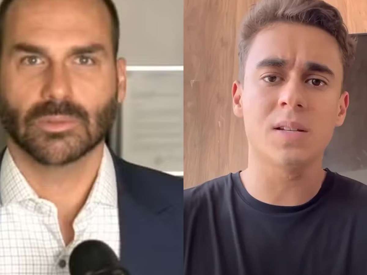 Após atrito nas redes sociais, Eduardo Bolsonaro criticou a postura de Nikolas Ferreira, com quem compartilha a 'base bolsonarista'