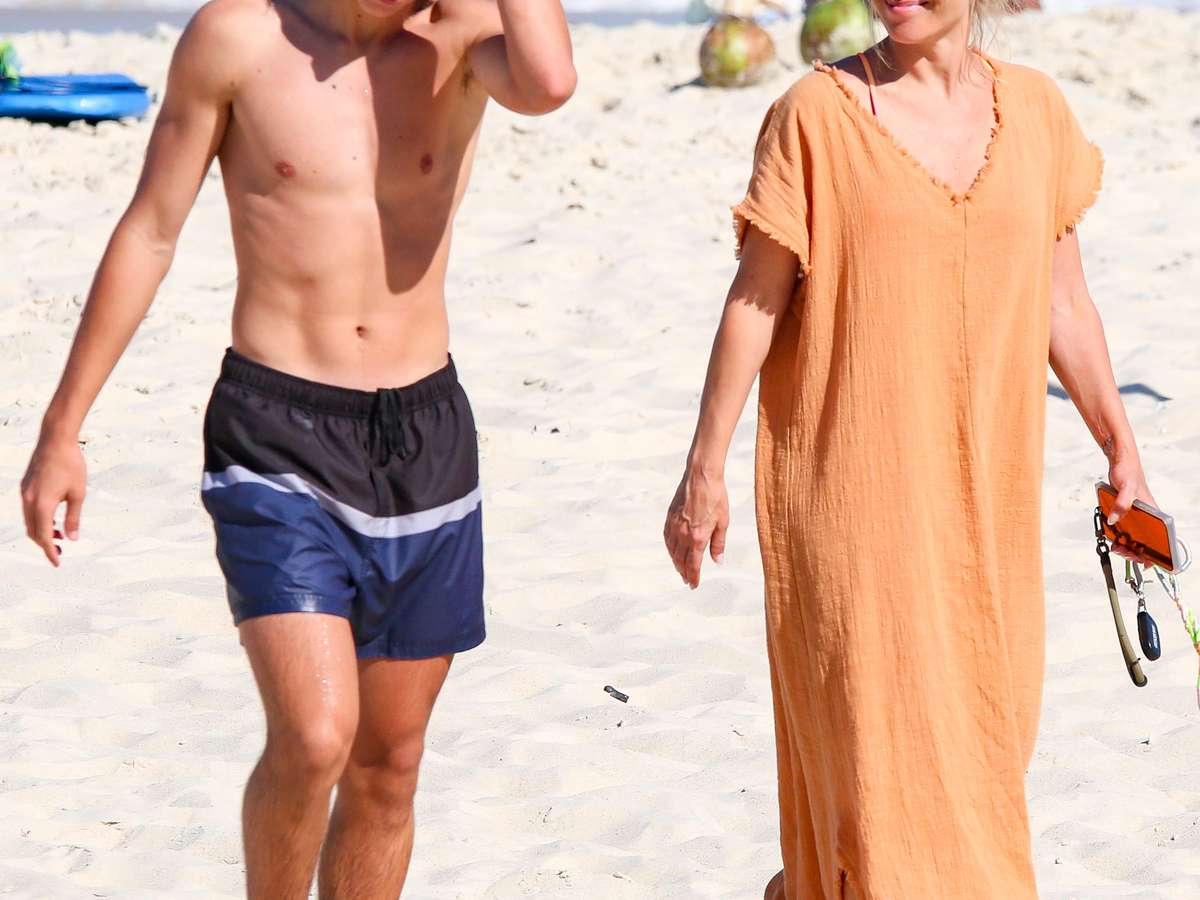 Os paparazzi ainda pegaram o registro de quando os dois caminhavam lado a lado na areia da praia após ele dar uma mergulhadinha no mar.