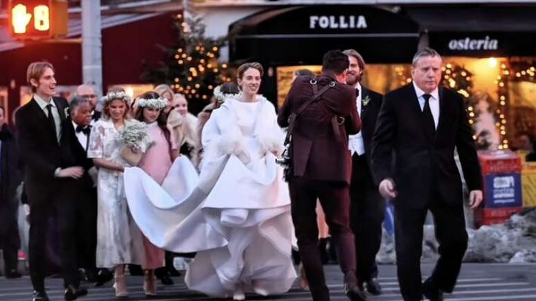 A atriz Maya Hawke, 27, reuniu o elenco de Stranger Things, seus colegas de trabalho, para o seu casamento no último sábado, 14, em Nova York.