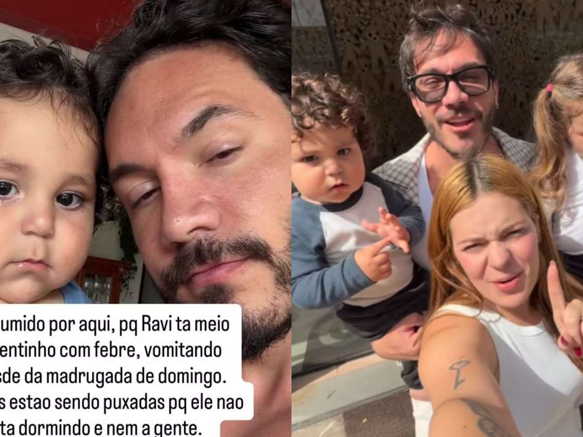 "Ravi tá meio doentinho, com febre, vomitando desde a madrugada de domingo. As noites estão sendo puxadas porque ele não tá dormindo, e nem a gente", escreveu o pai coruja.