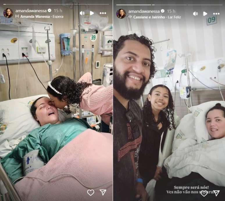 Em um dos cliques, Amanda recebe o carinho da filha, Mel, de 12 anos, enquanto no outro, aparece acordada ao lado da família, em uma selfie tirada pelo próprio Dobson. Na legenda da publicação, ele reforçou o laço entre eles com a mensagem: "Sempre será nós! Não vão nos separar".