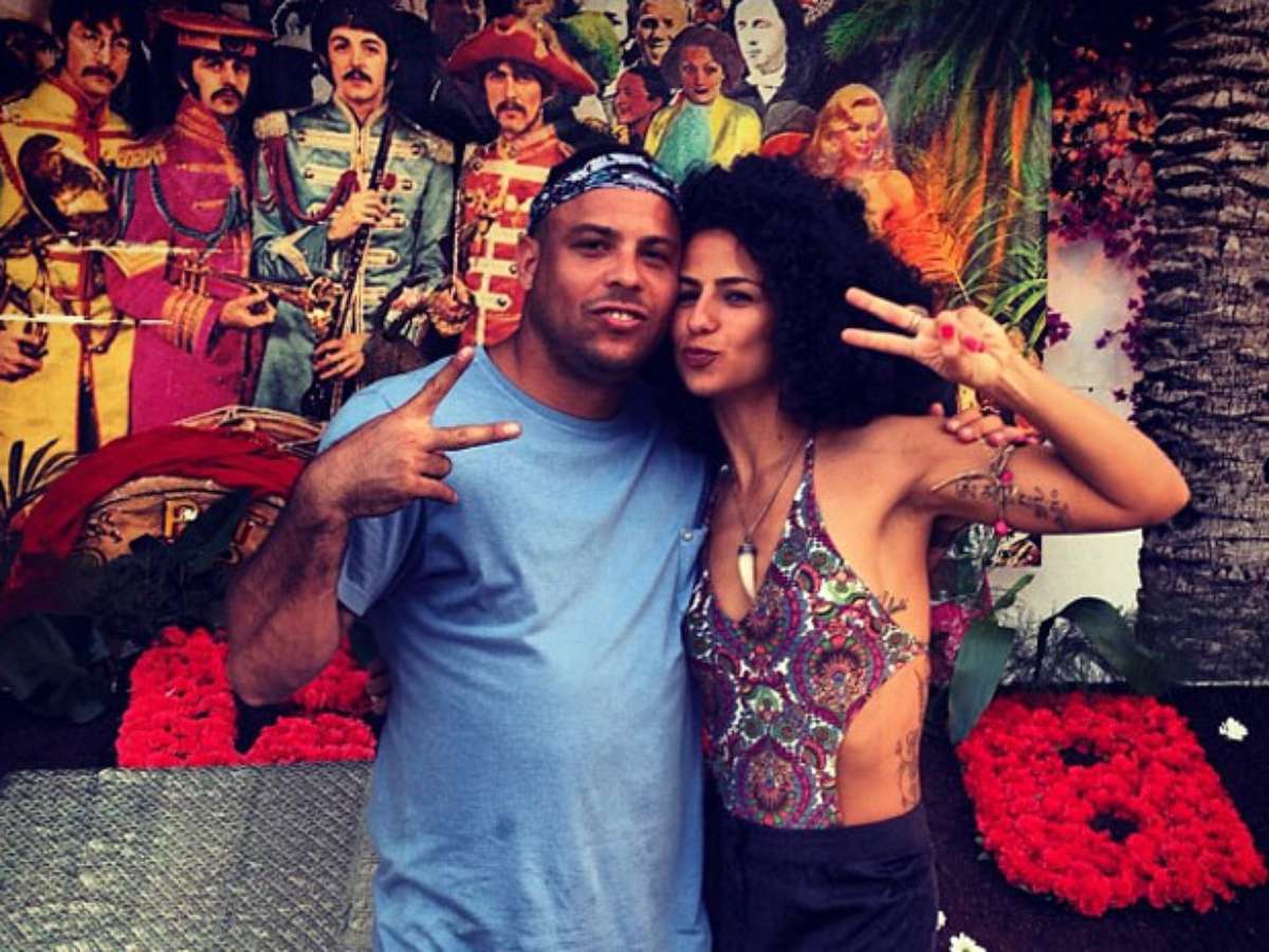 Em estilo hippie, Paula Morais posa com Ronaldo fazendo símbolo da paz