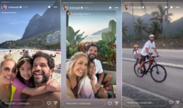 Duda Nagle compartilhou uma foto com a filha e Mariane, sua nova namorada; os três curtiram um dia de praia no Rio de Janeiro