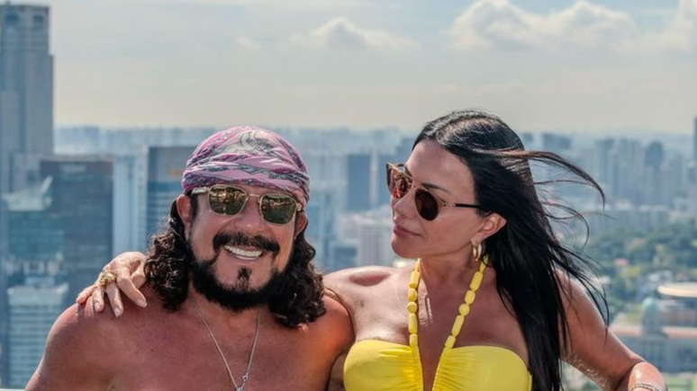 Em Singapura, Bell Marques encara piscina nas alturas com a esposa: 'Caramba'