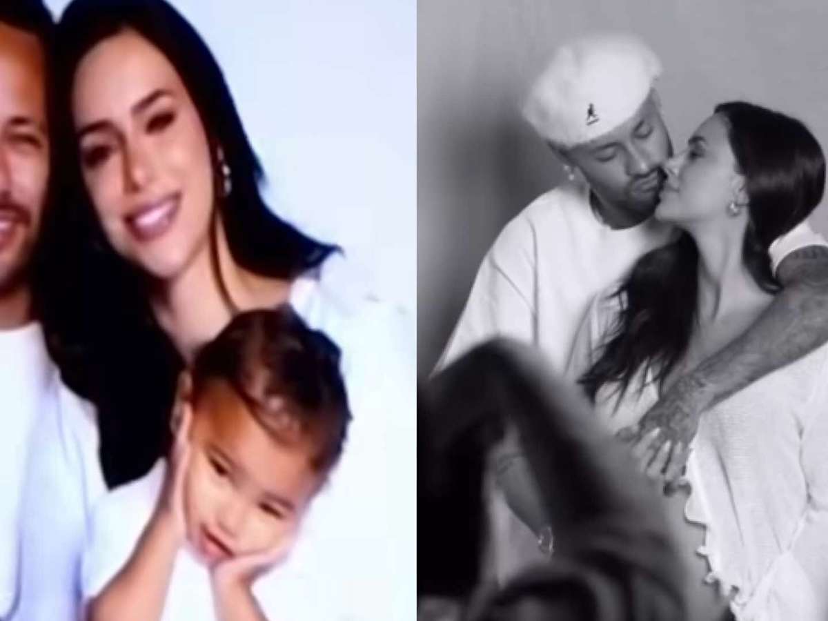 Grávida, influenciadora Bruna Biancardi mostra bastidores de ensaio fotográfico com o jogador Neymar e com a filha, Mavie