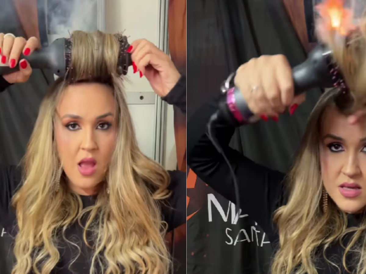 Em vídeo compartilhado nas redes sociais, a artista mostra o momento em que uma escova modeladora pega fogo no camarim onde ela está.