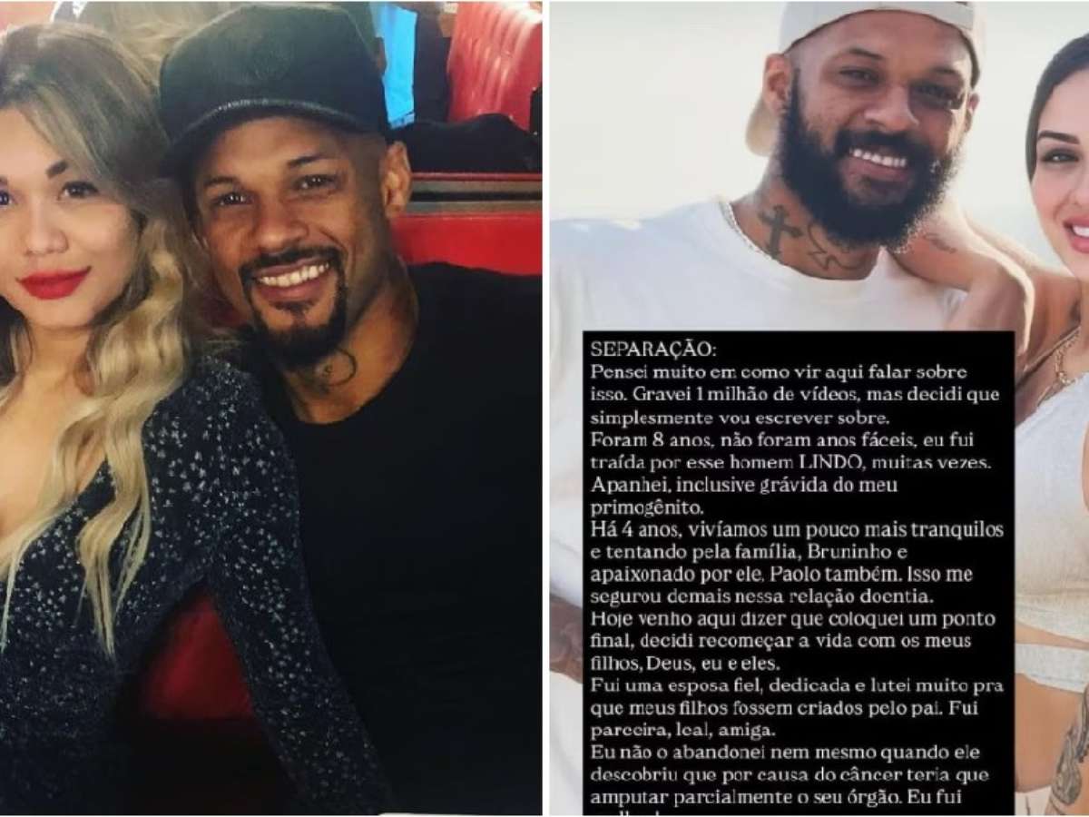 Nos stories do Instagram, Andressa contou que sofreu violência física mesmo durante a gravidez do primeiro filho do casal. "Foram oito anos difíceis. Fui traída muitas vezes e apanhei, inclusive grávida do meu primogênito", disse. A biomédica descreveu a relação como "doentia", mas explicou que tentou manter a união pelos filhos Bruninho e Paolo. "Há quatro anos, tentávamos manter a família. Hoje coloco um ponto final e decido recomeçar minha vida com meus filhos, Deus, eu e eles", completou.