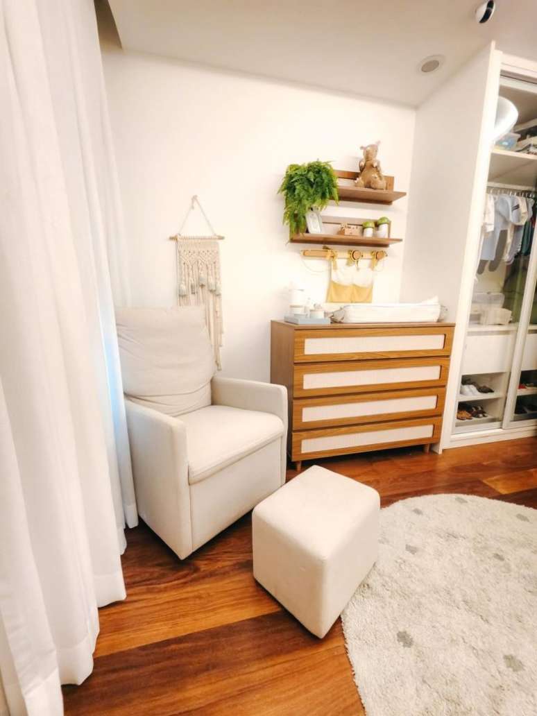 Já pensando na chegada do caçula, Ary Mirelle também mostrou como está ficando o novo quartinho de Joaquim. A decoração segue uma proposta acolhedora e natural, com móveis de madeira clara, incluindo berço, cômoda, guarda-roupa e uma poltrona de amamentação. O ambiente ganhou ainda um sofá aconchegante e ilustrações nas paredes que remetem à natureza e animais.