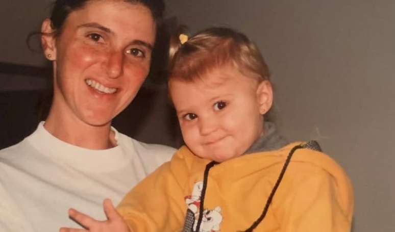 Essa menina sorridente no colo da mãe nem imaginava que se tornaria uma grande campeã no esporte. Reconhece?