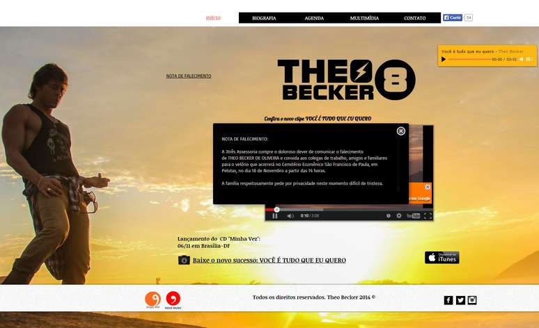 O boato sobre a morte do Theo surgiu após uma nota de falecimento ser publicada no site oficial do artista.