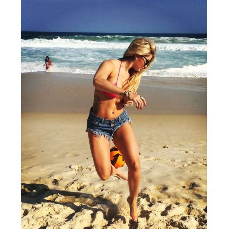 A ex-BBB Aline Gotschalg mostrou que “bate um bolão”. De biquíni rosa e shorts jeans, a estudante brincou com uma bola na praia durante o feriado desta terça-feira (21). “Bom feriado meus amores!!! Um dia iluminado pra vcs, cheio de felicidade e alegrias assim como o meu...”, escreveu ela na legenda de seu Instagram.
