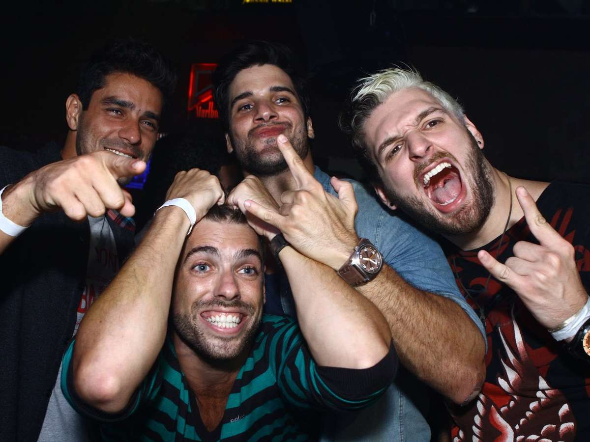 O ex-BBB Mau Mau reuniu ex-participantes do Big Brother Brasil 14 para comemorar seu aniversário na festa Quarta Secreta, no Barzin, na noite de quarta-feira (17), no Rio de Janeiro. Na foto Diego, Mau Mau, Marcello e Cássio
