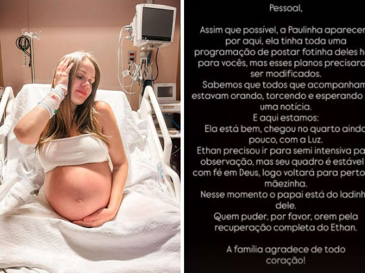 Conforme comunicado emitido, após o nascimento, Ethan precisou ser encaminhado para a unidade de tratamento semi-intensiva. “Pessoal, assim que possível, a Paulinha aparecerá por aqui. Ela tinha toda uma programação de postar fotinha deles hoje para vocês, mas esses planos precisaram ser modificados. Sabemos que todos que acompanham estavam orando, torcendo e esperando por uma notícia”, começou.