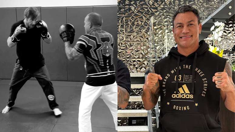 O vencedor do "BBB 7", Diego Alemão, de 44 anos, começou a treinar boxe para enfrentar o tetracampeão mundial Acelino Popó, de 49 anos. Nesta segunda-feira (4), o ex-BBB divulgou imagens de sua preparação nas redes sociais, enquanto os dois trocam provocações sobre o confronto que deve acontecer após seis meses de treinamento.