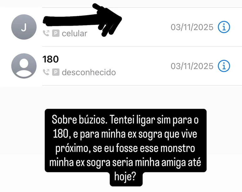 "Sobre Búzios. Tentei ligar, sim, para o 180 e para minha ex-sogra, que vive próximo. Se eu fosse esse monstro, minha ex-sogra seria minha amiga até hoje?", escreveu a loira.