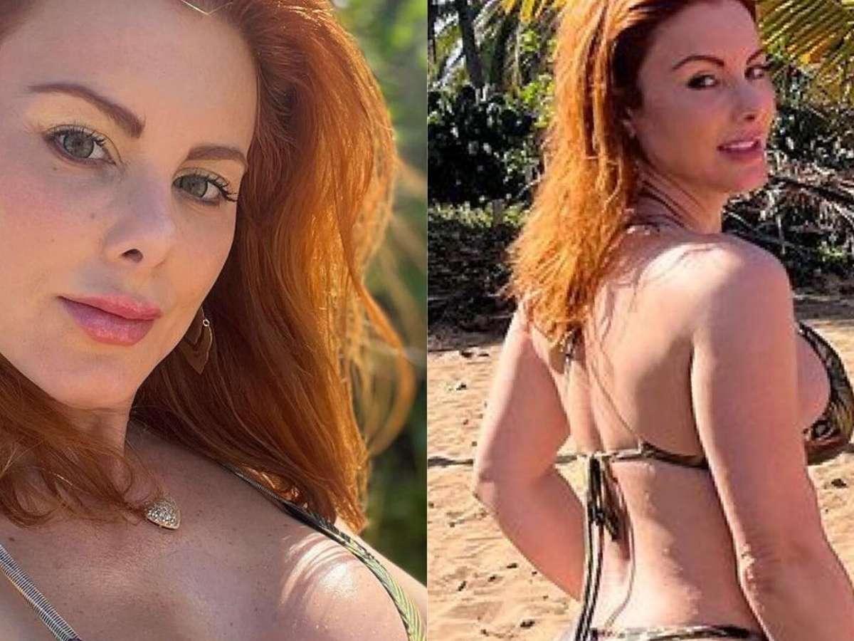 Ex-Fazenda Deborah Albuquerque surpreende ao surgir de biquíni fio-dental na praia