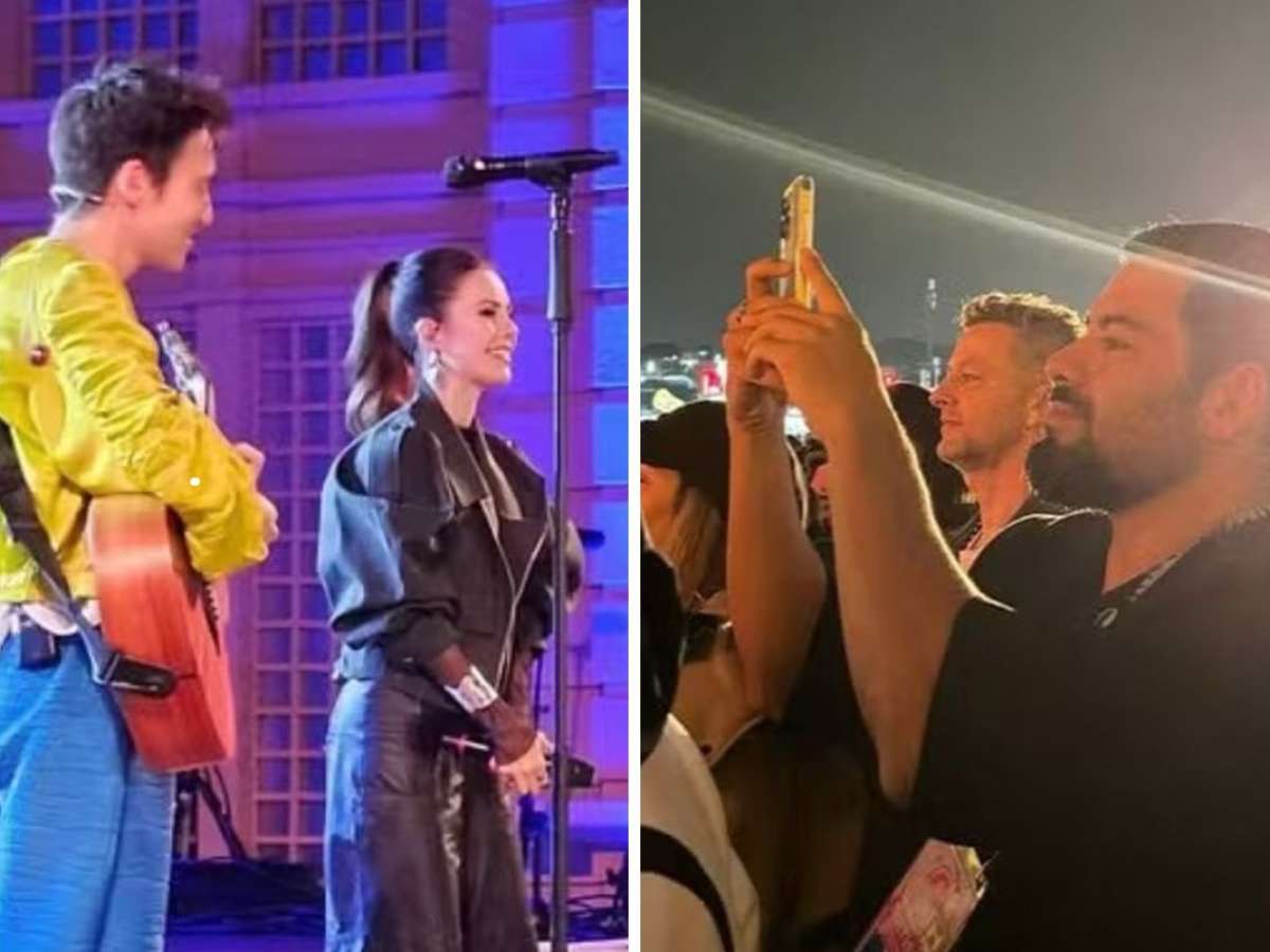 Ex-marido e atual namorado assistem juntos ao show de Sandy no The Town; veja