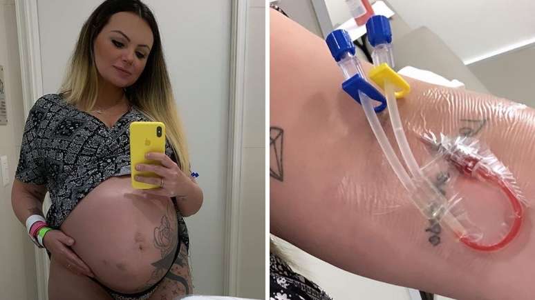 "Graças a Deus existe anticoagulante para salvar meu filho(a)! Pra quem não sabe, tenho uma doença chamada Trombofilia, que é uma predisposição para a formação de coágulos no sangue. Se não tratado, pode dar um AVC, uma embolia pulmonar e passar por abortos repetitivos. No ano passado, eu não sabia que tinha essa doença e acabei perdendo uma filha, mas Deus é tão bom que me ajudou a engravidar novamente e agora com esse tratamento (FIV), estou a poucos dias de ter meu milagre em meus braços!", escreveu ela no Instagram.