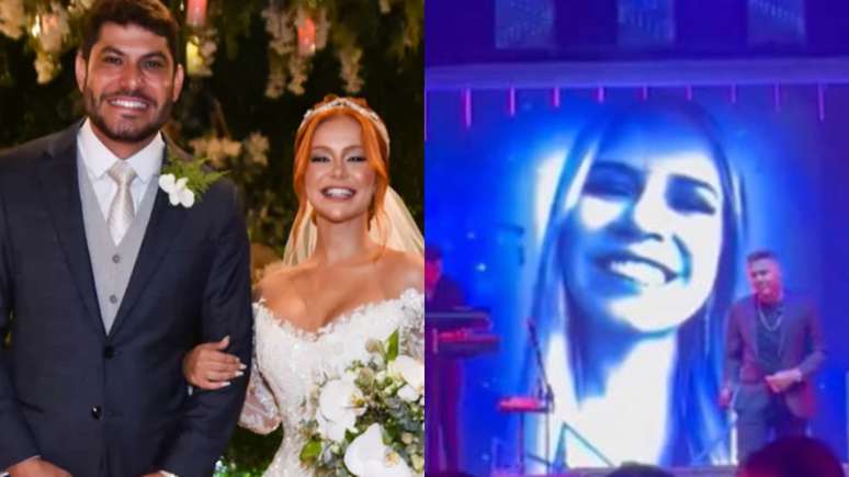 Marília Mendonça, ícone da música sertaneja que faleceu em 2021, foi homenageada durante o casamento do ex-noivo, empresário Yugnir Ângelo. Na cerimônia de união do famoso com Mirela Janis, avaliada em mais de R$ 2 milhões. uma imagem da cantora foi projetada no telão.