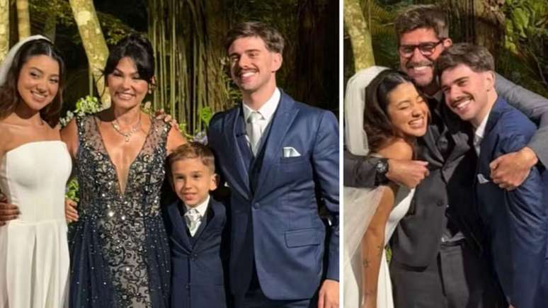 Suzana anunciou o fim do casamento de 15 anos com Flavio Saretta, em julho desse ano. Além de Felipe, o ex-casal também é pai de Benjamin, de 9 anos, que aparece na foto abaixo ao lado da mãe e dos noivos.