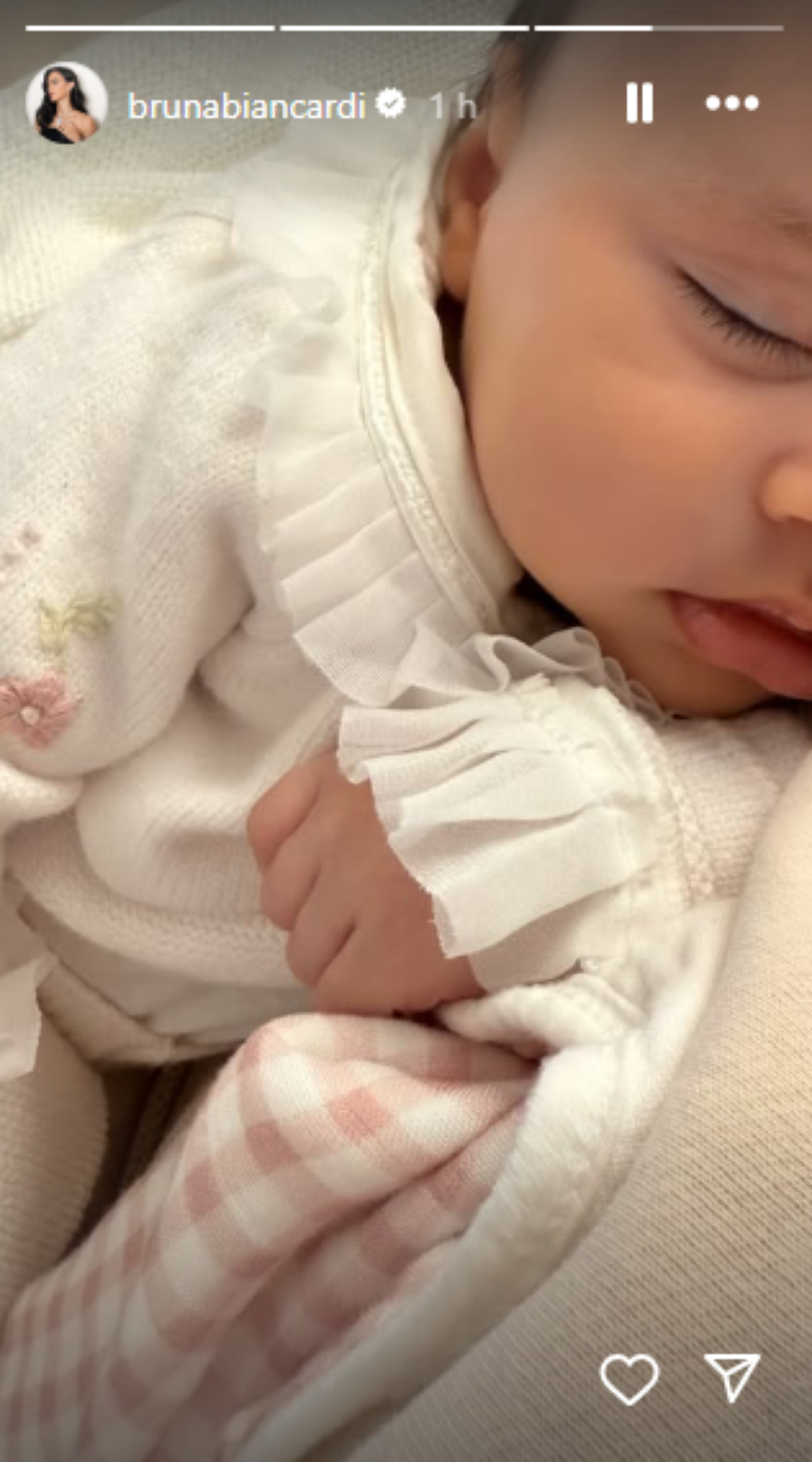 Por meio de seus stories no Instagram, a mamãe coruja postou uma imagem de sua primogênita primeiro, no qual a pequena posa para a foto trajada em uma fantasia encantadora e fazendo careta. Em seguida, ela exibiu o rostinho de sua caçulinha, enquanto a bebê cochilava pacificamente, vestida de branco e enfeitada por babados delicados.