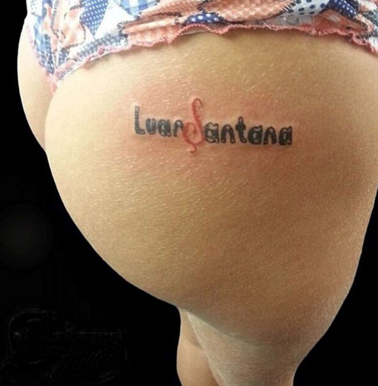 Uma fã de Luan Santana exibiu nesta quarta-feira (19) a foto da tatuagem que fez em homenagem ao cantor: o nome dele em seu bumbum. A imagem foi compartilhada por Luan em suas redes sociais e gerou diversos comentários por parte dos seguidores.