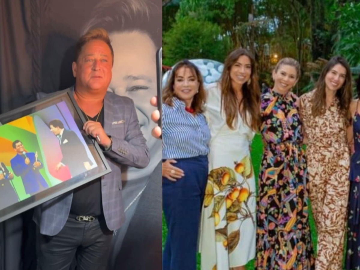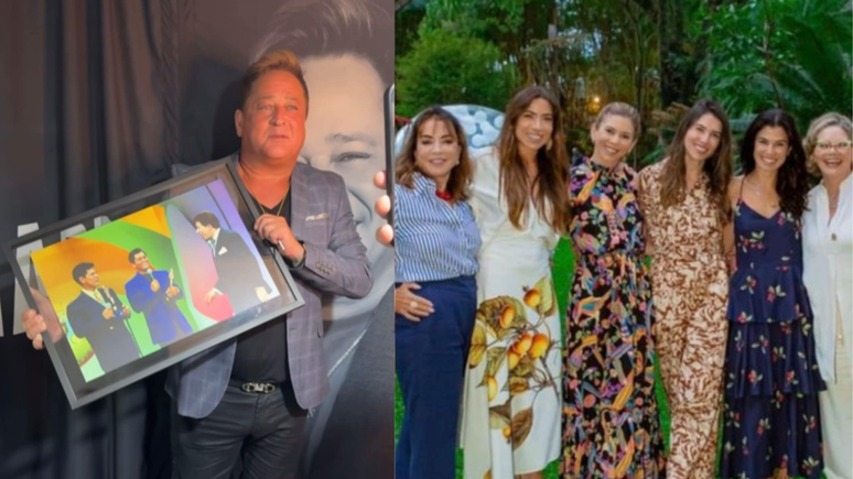 Família Abravanel presenteia Leonardo com um quadro especial durante show; Poliana Rocha, esposa do cantor, compartilha o momento