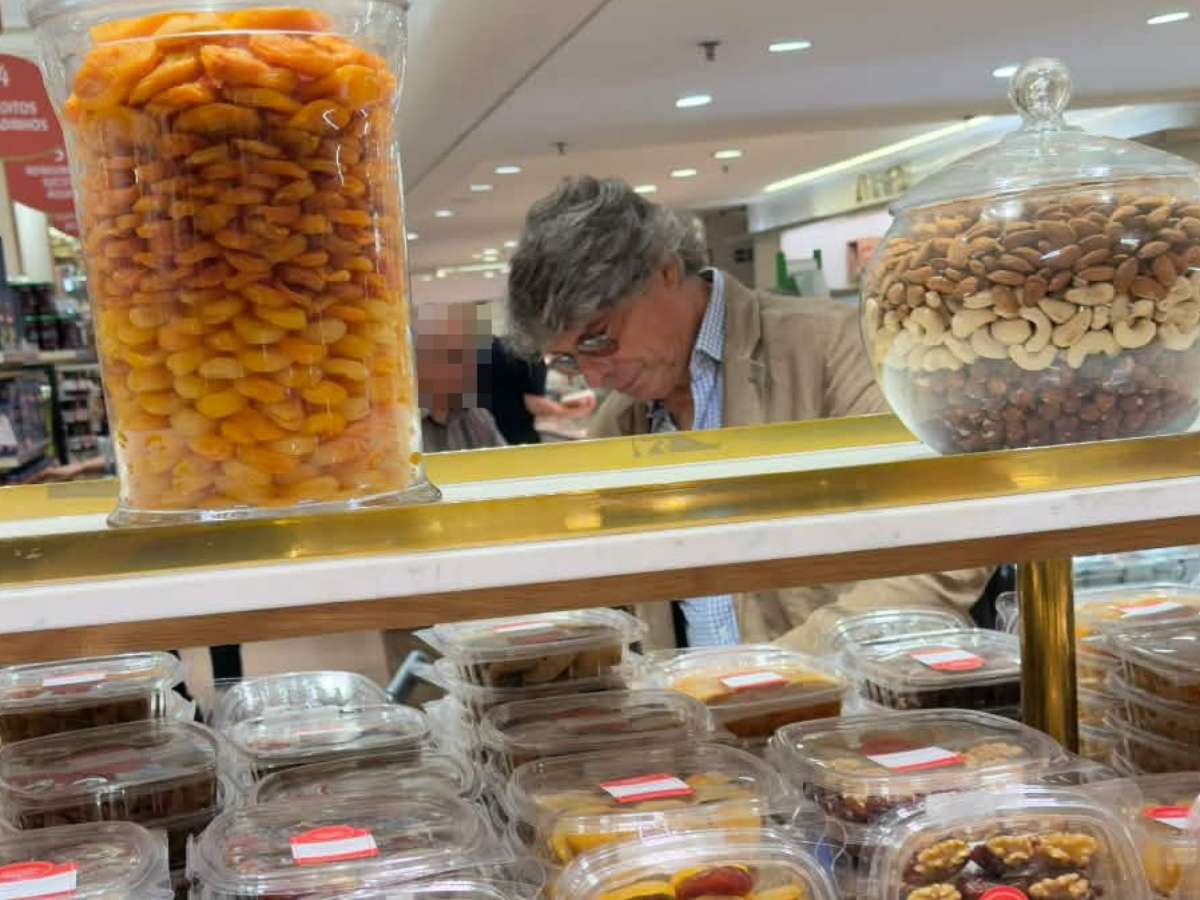 Sozinho, ele circulou sem pressa e se mostrou criterioso ao escolher o que colocava no carrinho.