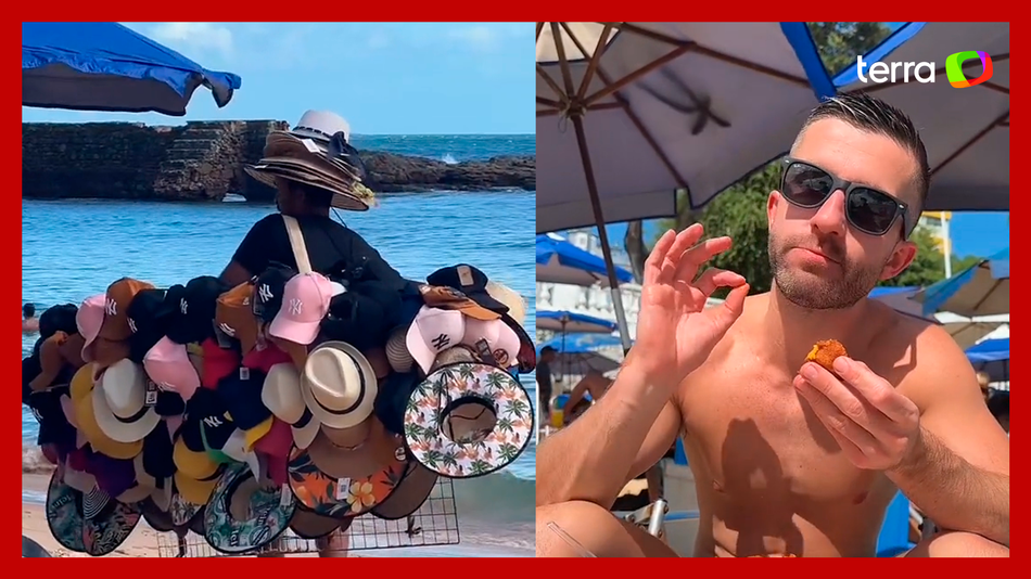 Influenciador britânico viraliza ao classificar praias brasileiras como 'caóticas'. Registro bem-humorado de Nick Whincup repercutiu e já soma mais de 2 milhões de visualizações. No vídeo, ele mostra como é pegar um dia de sol no Porto da Barra, em Salvador. Ele destaca a quantidade e o tamanho das caixas de som levadas pelos brasileiros. Outra pontuação do britânico são os inúmeros produtos vendidos na praia. No fim, apesar do 'caos', ele elogia: "É caótico, mas é Brasil. E eu amo".
