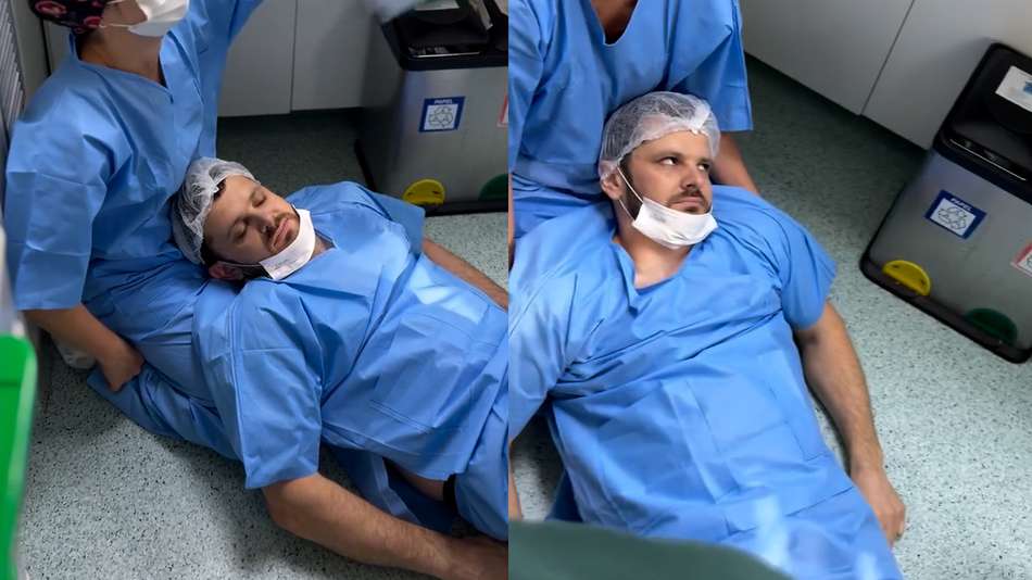 Pai desmaia ao acompanhar parto da filha e precisa de amparo de equipe médica em SC. O homem, identificado como Maicon Pedroso, deu um susto ao não suportar a pressão de ver a filha nascer. A imagem, divulgada pela Matre Fotografia no último dia 18, logo viralizou nas redes sociais. Apesar do susto, o homem ficou bem, e a criança nasceu saudável no hospital localizado em Criciúma. Reprodução/matre_fotografia/Instagram