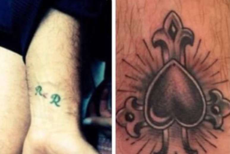 O ex-jogador de futebol Ronaldo tatuou no pulso as letras R e D, inicial de seu nome e da ex-esposa, Daniella Cicarelli. Após o término do casamento, ele transformou a letra D em R, em referência ao seu filho, Ronald. Quando começou a namorar a modelo Celina Locks, Ronaldo aceitou um pedido da amada e fez uma cruz com um coração para cobrir as letras.