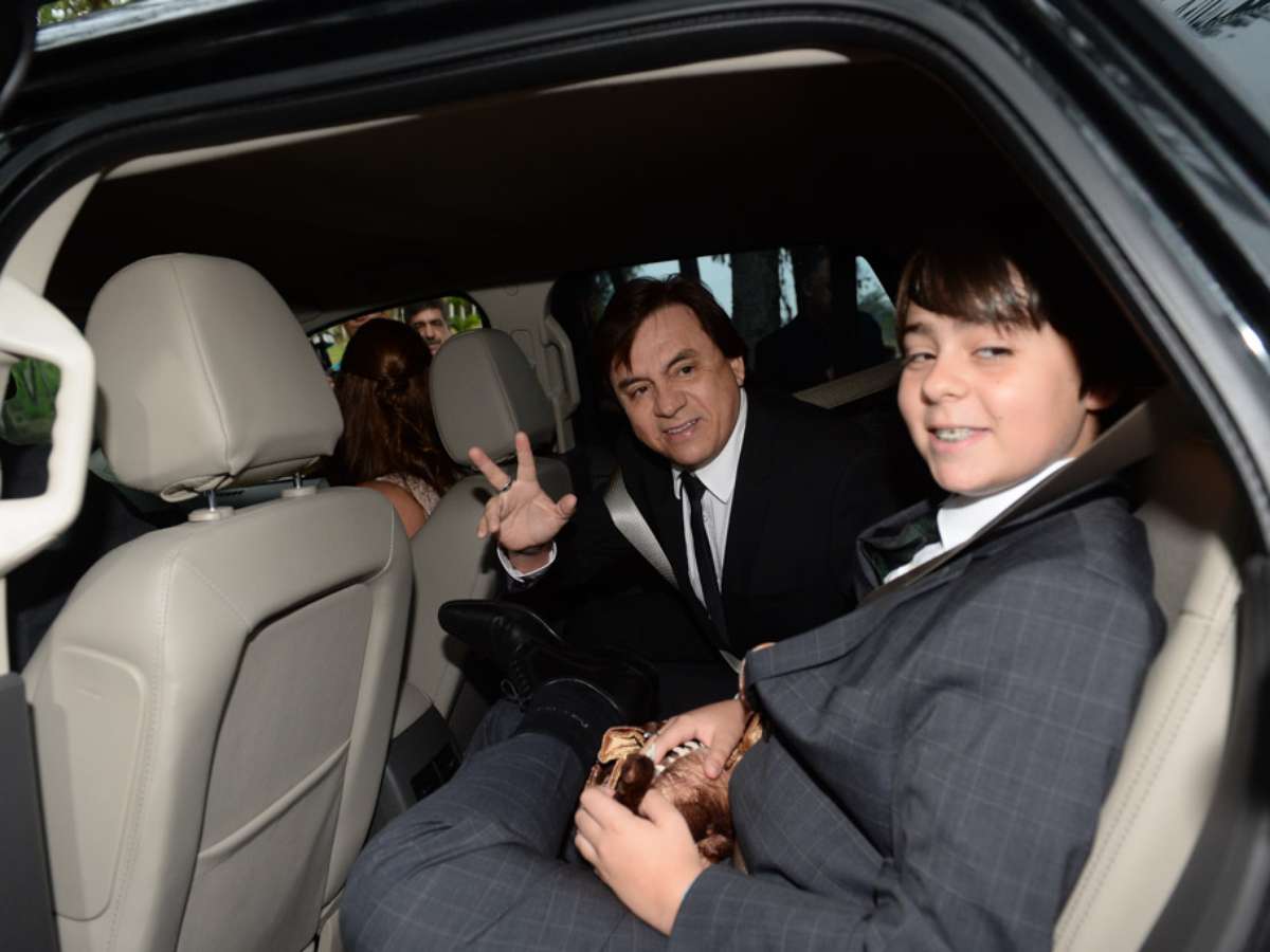 Amauri, irmão de Xororó, pai do noivo, chegou com a família para a cerimônia