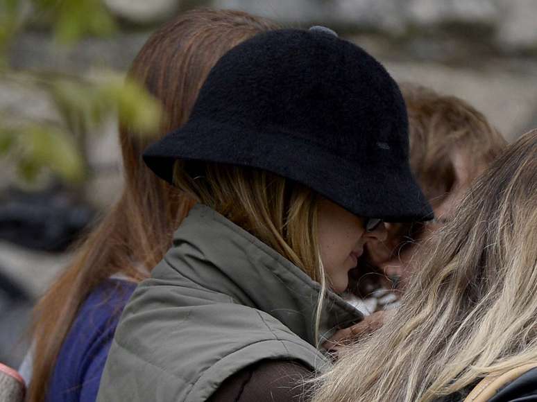 Viúva de Champignon, Cláudia Campos deixou o cemitério amparada, na tarde desta terça-feira (10), em Santos. Ela está grávida de cinco meses de uma menina, que se chamará Maria AméliaFoto: Ricardo Matsukawa / Terra