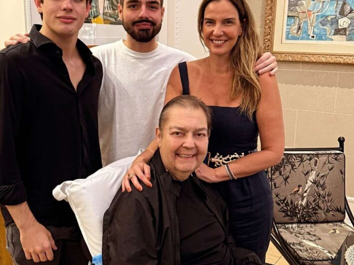 Na imagem, Faustão posa ao lado da mulher, Luciana Cardoso, e dos filhos João Silva e Rodrigo. A filha mais velha, Lara Silva, não aparece no clique, mas foi lembrada pelo irmão. "Faltando você, Lara", escreveu João ao publicar a foto.