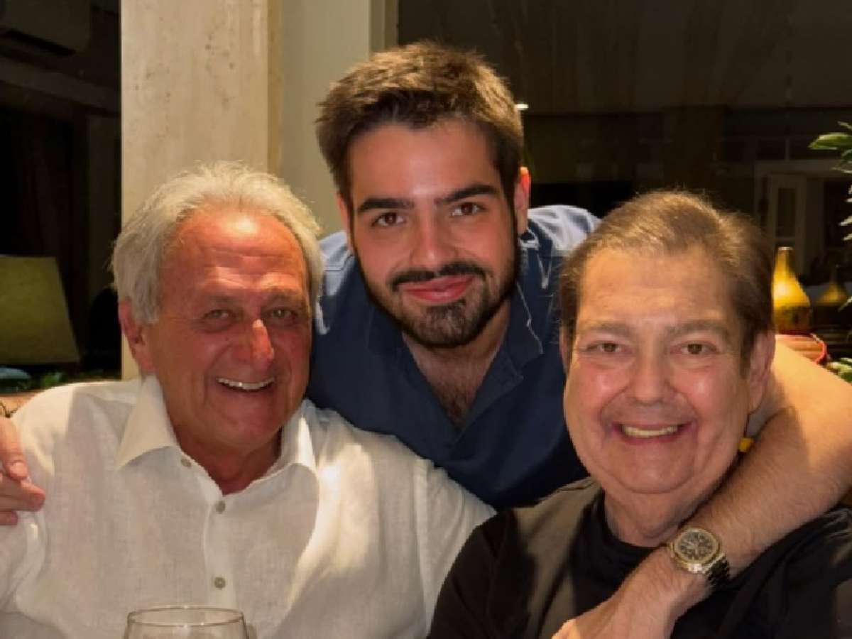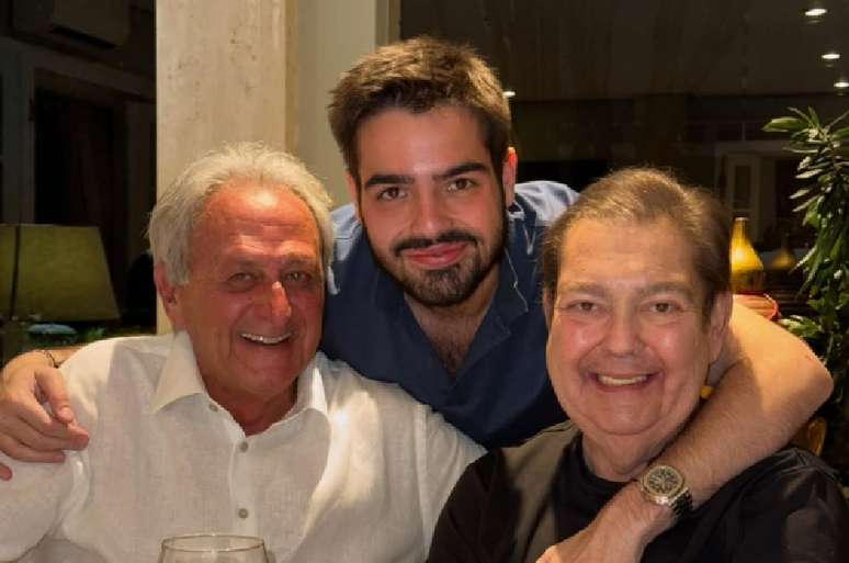 João Silva compartilhou nesta quinta-feira, 25, uma foto em família ao lado do pai, o apresentador Fausto Silva, de 75 anos. O raro registro mostra o Faustão sorridente enquanto é abraçado pelo filho.