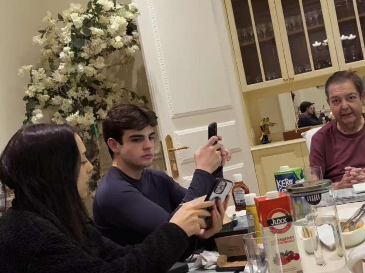 Faustão apareceu em vídeo compartilhado pelo filho João Silva durante jantar em família.
