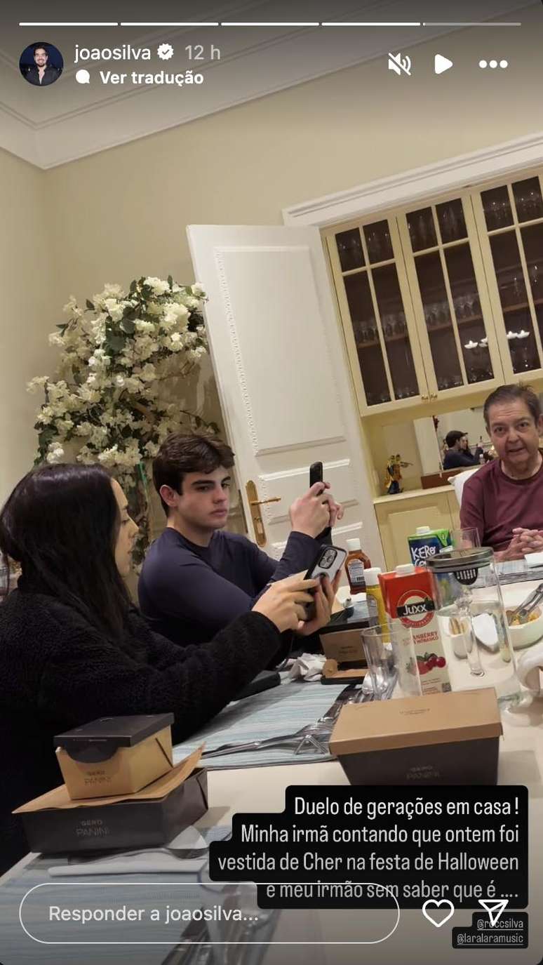 No registro, João brincava sobre o irmão caçula, Rodrigo, não reconhecer a fantasia que a irmã mais velha, Lara Silva, usou em uma festa de Halloween. Logo no início, os seguidores puderam ver Faustão sentado à mesa, jantando com os filhos e com semblante tranquilo.