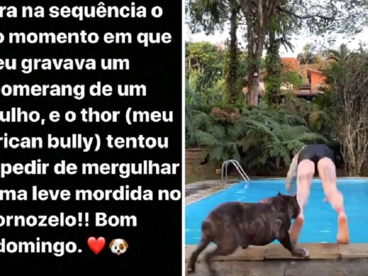 Felipe Titto é mordido por cachorro ao pular na piscina