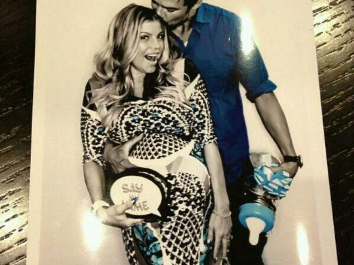 Fergie, que espera um menino, deu início à festa anunciando aos convidados: "woo! É a primeira festa do meu menino!"