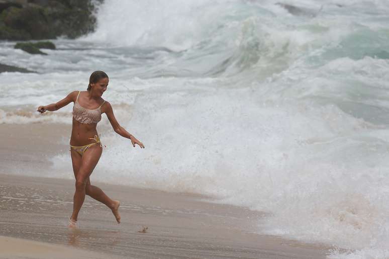 Fernanda de Freitas exibe boa forma em dia de praia no Rio