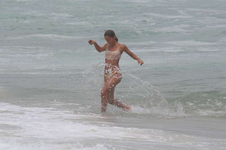 Com duas amigas, atriz esteve na Prainha neste sábado