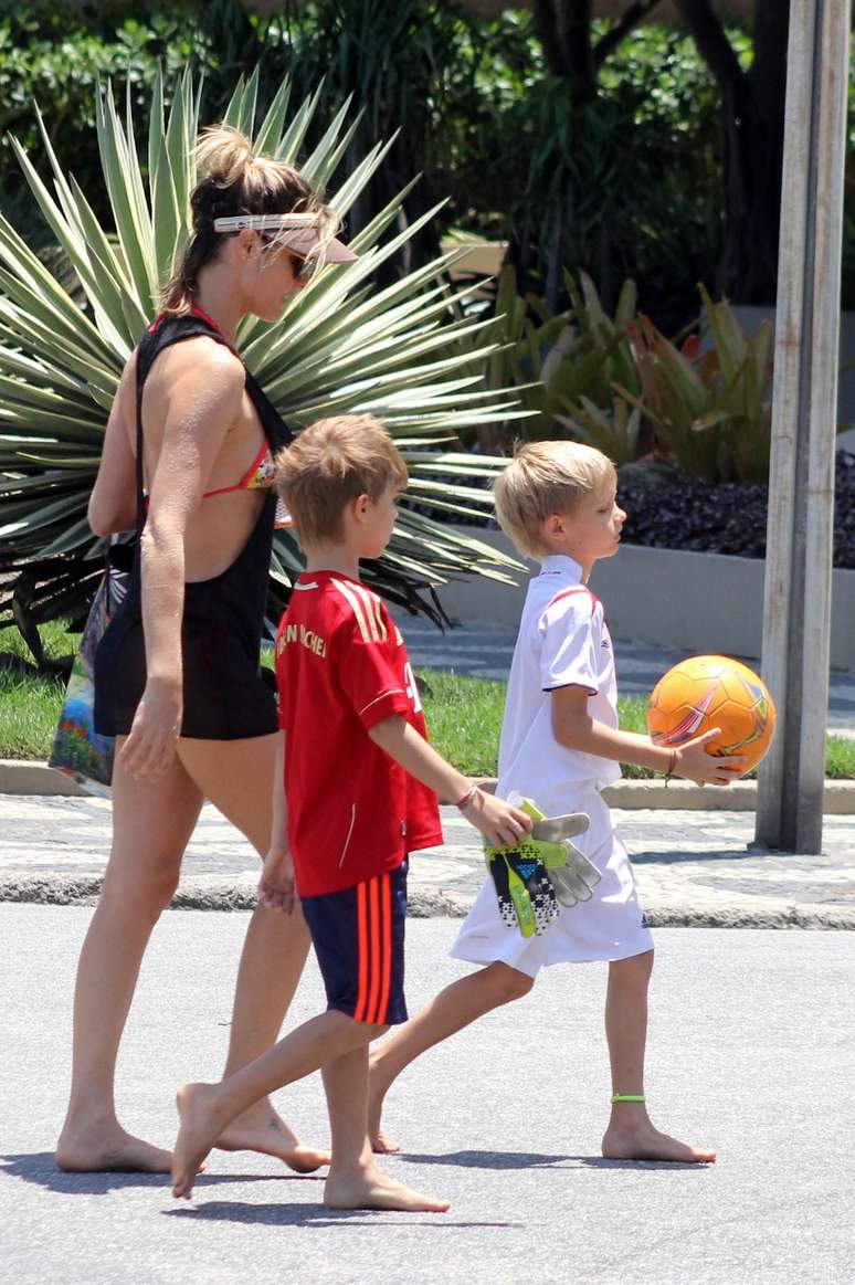 A modelo, atriz e apresentadora Fernanda Lima aproveitou a manhã deste domingo (1°) para brincar na praia com os filhos gêmeos Francisco e João. Veja fotos: