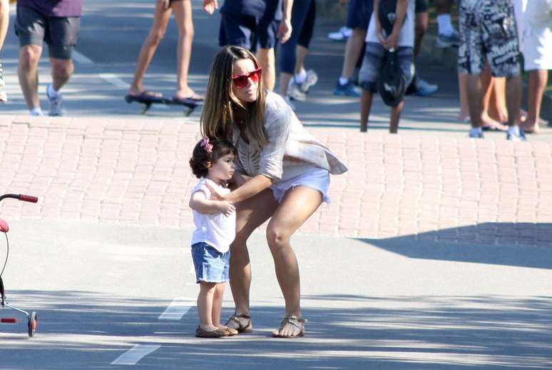 Fernanda Pontes levou a filha Malu, de 3 anos, para curtir o domingo na Lagoa Rodrigo de Freitas, no Rio. Virna também estava por lá com o filho Pedro, de 2 anos, e Maria, de apenas três meses