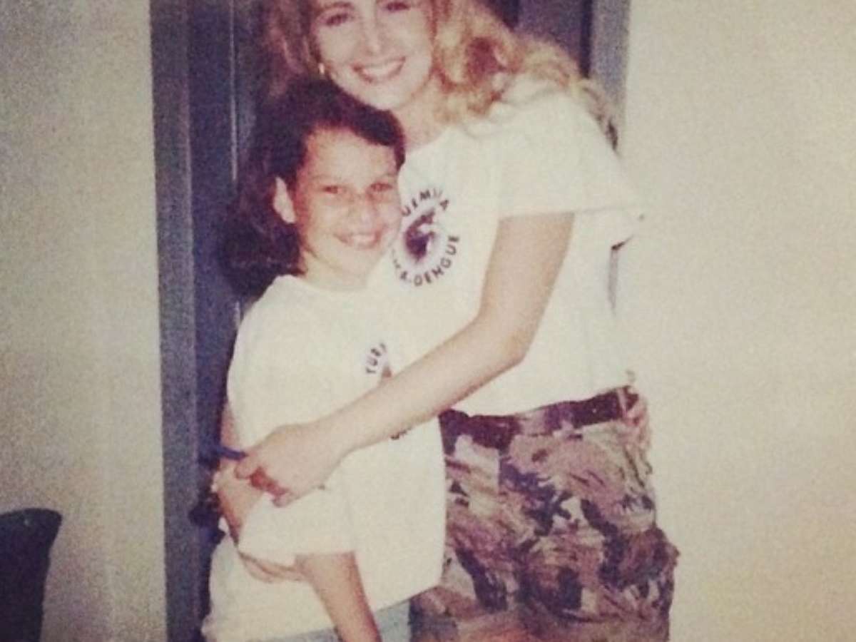 Ainda na infância, Fernanda Souza posa com a apresentadora Angélica