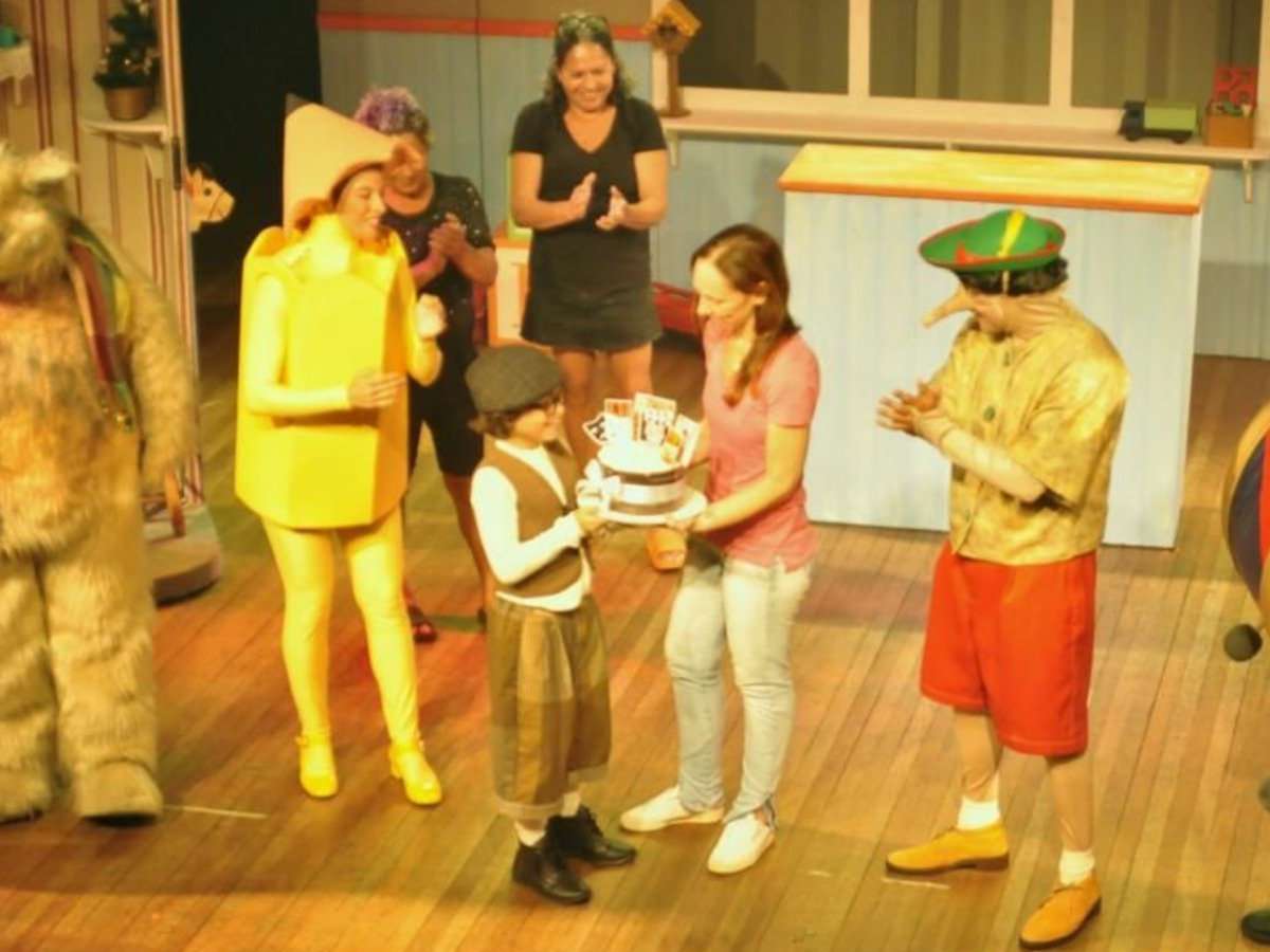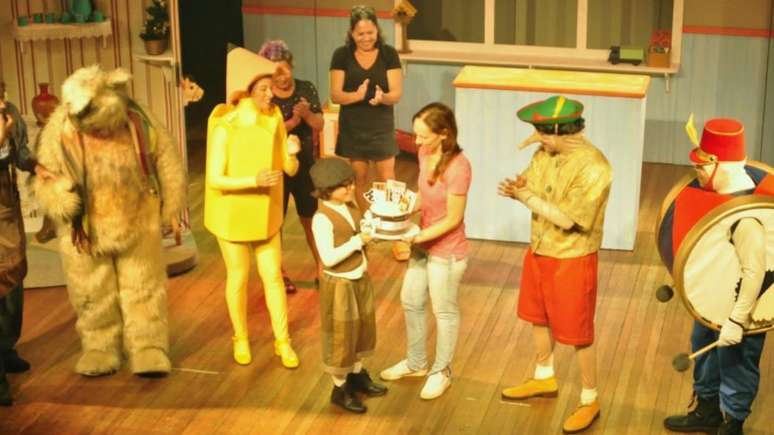 O menino também adorou poder festejar com as pessoas presentes na plateia do teatro. "Sentir a energia do público, da equipe e do elenco cantando parabéns pra mim, depois da peça, foi muito incrível! Eu amei!", detalha. "No final, enquanto tirava foto com o público só pensava no maravilhoso bolo de chocolate que ia comer (risos)", diverte-se o pequeno astro. Parabéns, Miguel!